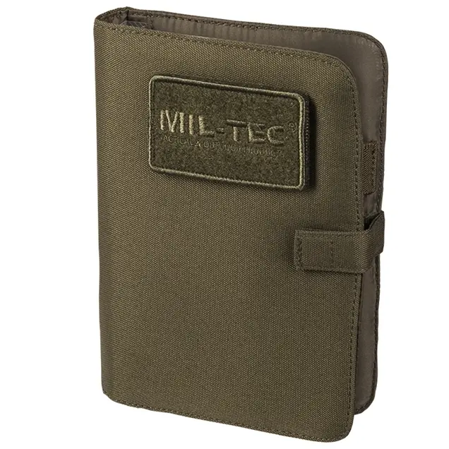 Polsterdatud kaanega taktikaline märkmik. Velcro kinnitusega, sees erinevad vahed ja kaks pliiatsihoidjat. Eemaldatav märkmik ja kaanel olev embleem.