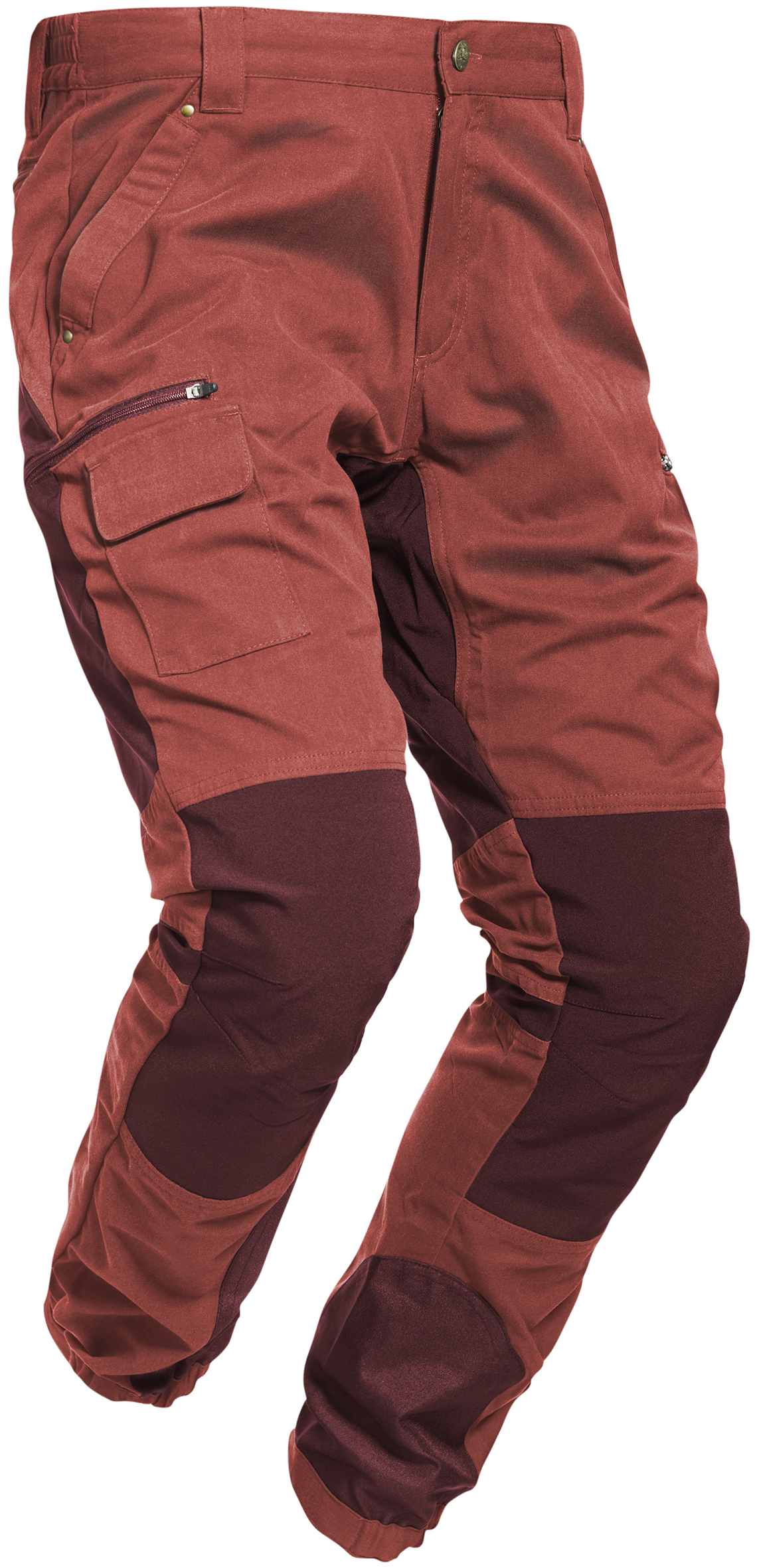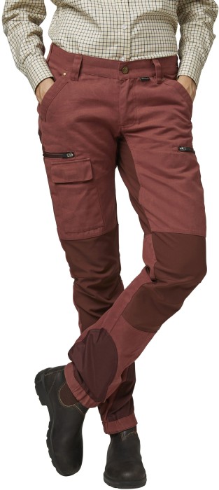 Stretch kangast ees ja taga, elastne vöökoht, kaks esitaskut, säärtel kaks lukuga taskut, magnetiga mobiiltelefoni tasku, elastsed ja reguleeritavad sääreavad.