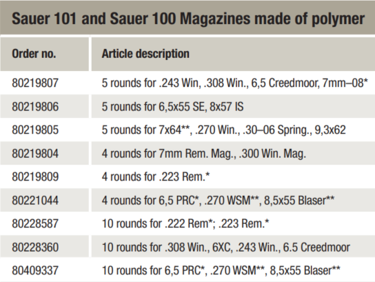 Sauer 100, 101 ja Mauser M18 padrunisalv