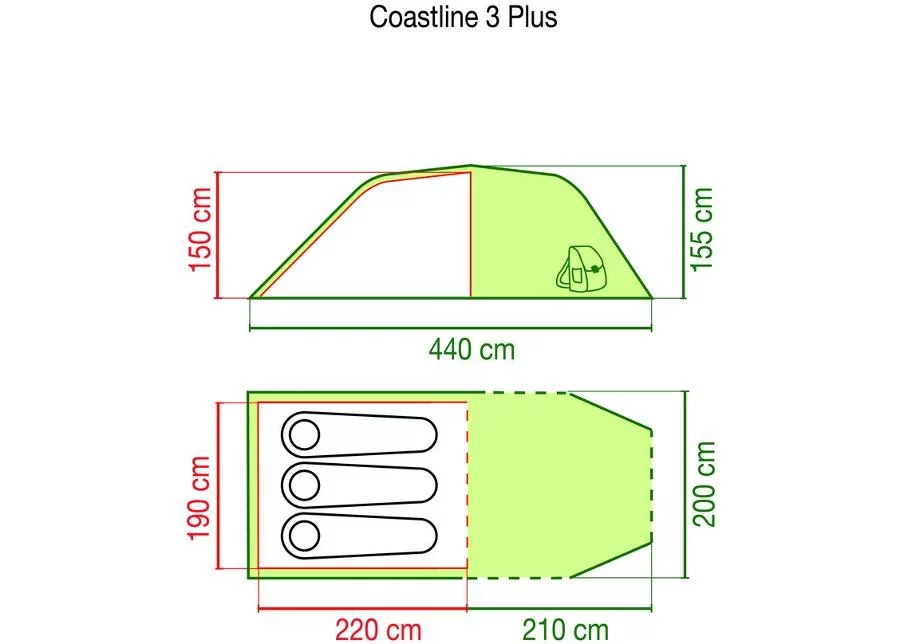 Coleman Coastline 3 Plus on ruumikas ja vastupidav tunnelkonstruktsiooniga matkatelk, mis sobib ideaalselt nii nädalavahetuse telkimiseks kui ka pikemateks väljasõitudeks. Tänu suurele eesruumile ja heale ilmastikukindlusele pakub see telk mugavat elamis- ja magamisruumi ka muutlikes ilmastikuoludes.
